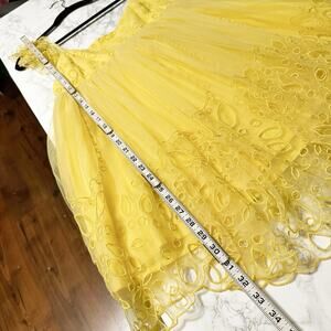 Anthro X Let Me Be Yellow Eyelet Tulle Mini Dress women’s size medium NEW