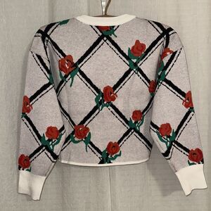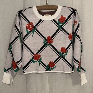 Anthro XXSP Maeve White Oversized Crop Crewneck Trellis Floral Pullover