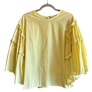 Anthro dRA Los Angeles Yellow Stripe Ruffle Sleeve Blouse - size Large