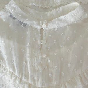 Anthro ivory sheer swiss dot ruffle hem blouse, XS