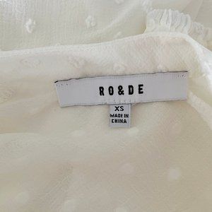 Anthropologie brand Ro & De short-sleeved ruffle-hem blouse. Cream-colored semi-sheer swiss dot material. Excellent condition!