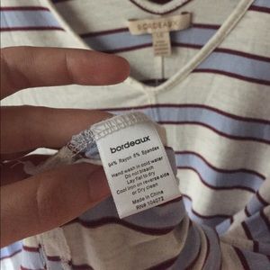 I'm selling a crazy comfortable striped tee from anthropologie that has a v neck and v back and tiny slits on the sides. Hangs beautifully! Only worn twice