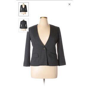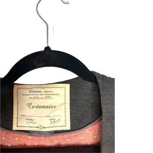 Anthropologie Cartonnier Slate Grey blazer with pink and white polka dot lining. Red stitching on the single button closure gives is a super fun pop. Roll the sleeves up to show off the gorgeous lining. Two small front pockets still stitched closed. New without tags.