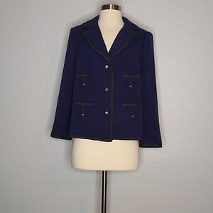 Anthro Cartonnier Windowpane Navy Blazer 12