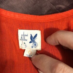 Anthropologie Edme & Esyllte crepe tunic top size 6. Bright orange with beaded accents on front placket. Belted waist. Cotton, crepe material that is semi sheer. Asymmetrical hemline and Crewneck top. Tank top straps. No holes or stains. Perfect for layering or warm weather wear!