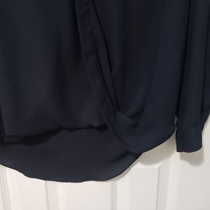 - Surplice style front with single button just below neck line