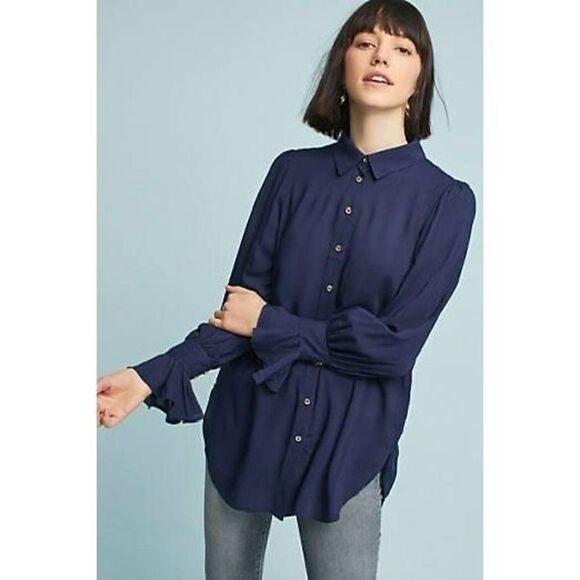 ✨Anthro Maeve Ruffled-Cuff Button Down Top✨