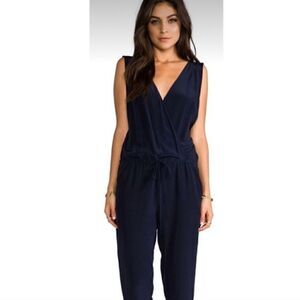 Anthro Rory Beca Navy Silk Cinch Waist Jumpsuit