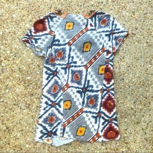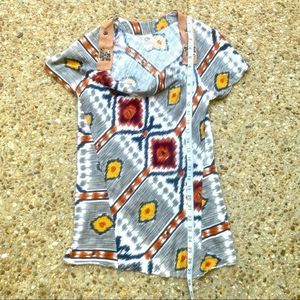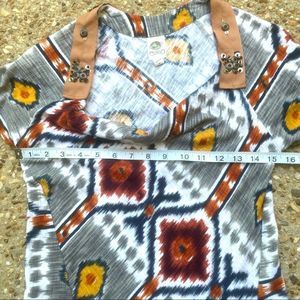 Anthropologie Tiny Tribal Indian print cowl neck beaded top