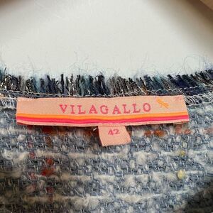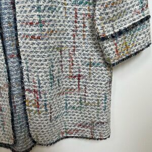Anthro Vilagallo Knit Tweed Jacket Long Cardigan Sweater Fringe size 42 / US 10