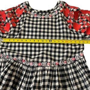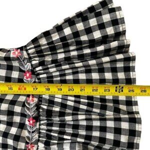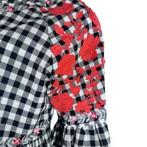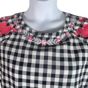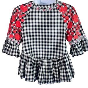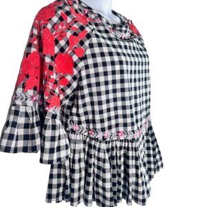 This adorable Pankaj & NIdhi for Anthropologie gingham peplum top features eye-catching red floral embroidery and a loose comfortable fit.