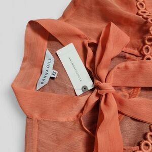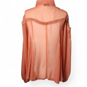 Anthroplogie |Rianna Gill Elegant ,Pleated Women's Peach Blouse with Tie Neck