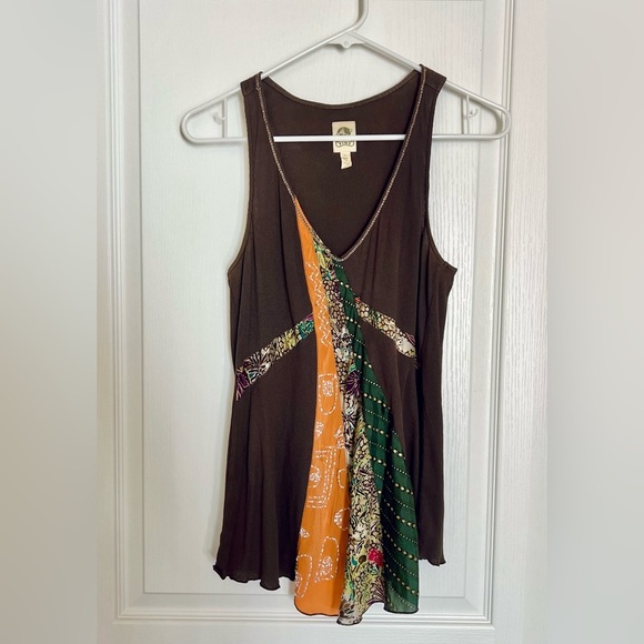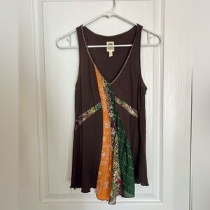 Anthropolgie Brown and Multicolor Patchwork Tank Top