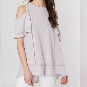 Anthropolgie Doe & Rae NEW Lavender Mist Cold Shoulder Embroider Detail Blouse M