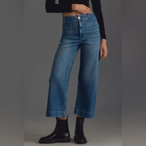 Anthropolgie Pilcro NWT The Skipper Cropped High-Rise Wide-Leg Jeans Med Blue 29