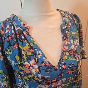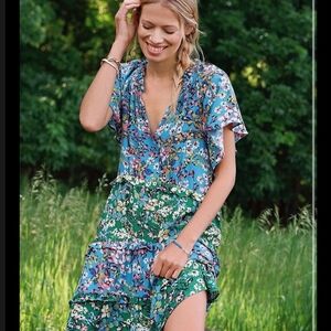 Anthropolgie Robin Tiered Ruffled Mini Dress Blue Green Womens Large