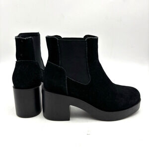 Anthropolgie SixtySeven Black Suede Leather Block Heel Platform Boots 7.5 38