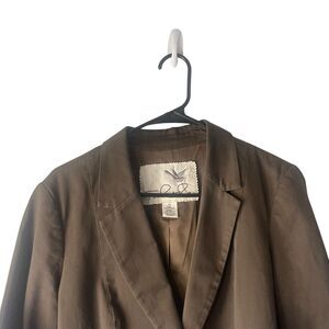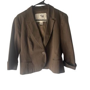 Anthropolgie Tabitha 10 Brown Cotton One Button Career Minimalist Blazer Jacket