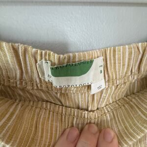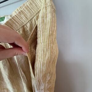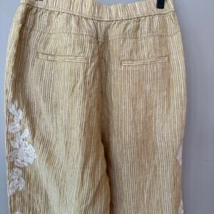 Anthropologie 100% Linen Yellow Stripe Floral Embroidered Pants Sz Sml Boho
