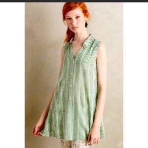 NWOT Anthropologie 11.1 TYLHO Percy Green and White striped Tunic.
