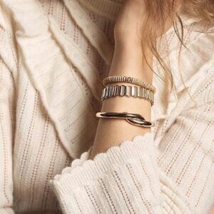 Cleaning out my jewelry box! 14K gold plated brass. Timeless bracelet from Anthropologie Serefina. The 7th picture is silver tone from the website, not the color I'm selling!