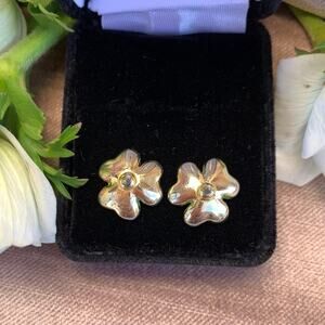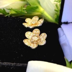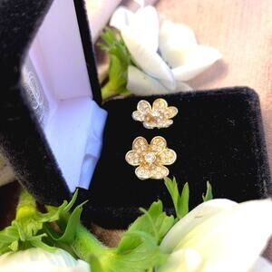 Anthropologie 14k Gold Plated Cubic Zirconium Pave Heart Floral Stud Earrings