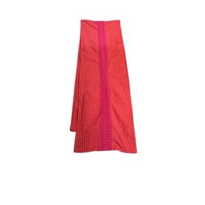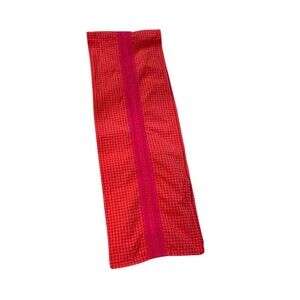 This is a preowned Anthropologie table runner. It is from the Posie Gugnham collection and can be paired with matching place mats. The runner is a vibrant pink with embroidery down the center. The manufacturer states the dimensions to be 16x90 but I measure: 15 by 92