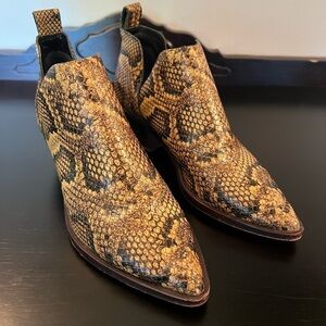 Anthropologie $160 Dolce Vita Santo II Ankle Boots Sz 6 Amber Snake Leather Bootie