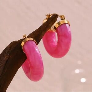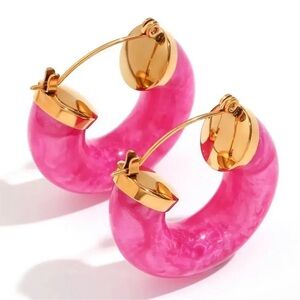 Anthropologie 18K Gold Stainless Steel Pink Hoop Earrings