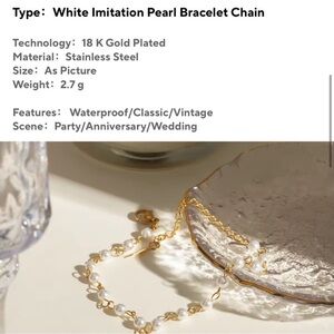 Anthropologie 18K Gold Stainless Steel Waterproof Pearl Finger Bracelet