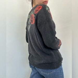 Anthropologie 27 Miles 100% Cashmere Rose Knit Gray Cardigan Button Front Size M