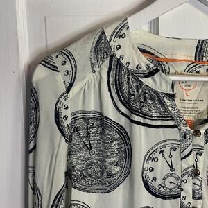 Anthropologie 27 of 52 Conversations from the limited-edition capsule collection. "Around the Clock" print. Super cute and fun top. 100% rayon. Hand wash.