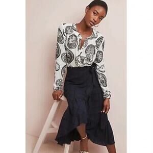 Anthropologie 27 of 52 Conversations Bohemian Clock Print Top Blouse W-276 Sz 0