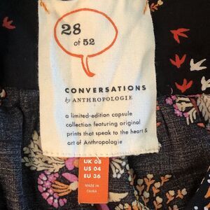 This Anthropologie button-up shirt is a must-have for any wardrobe. The colorful bird pattern adds a touch of whimsy to any outfit, while the classic fit and long sleeves make it versatile for any occasion. The shirt is made of lightweight and breathable rayon fabric, making it perfect for all seasons. It features a round neckline and button closure, as well as classic/fitted sleeves and accents. The shirt is easy to care for and recommended to be hand washed. It is available in size 4 and is a regular fit.