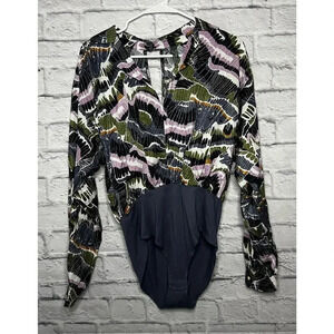 Anthropologie 2pc dress pant and bodysuit blouse set abstract print size 4.