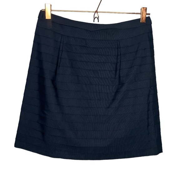 Anthropologie 4 Leifsdottir Navy Blue Tiered Ribbon Gold Zip Mini Pencil Skirt
