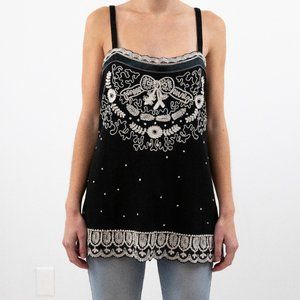 Anthropologie 4 Silk Mesh Embroidered Bow Tank Top