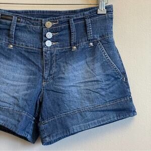 Anthropologie 4 blue jeans shorts high rise button fly Pilcro