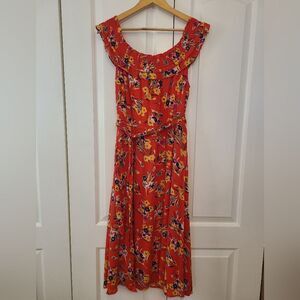 Anthropologie 47 of 52 Conversations Midi Dress Red Floral Boho Size 10