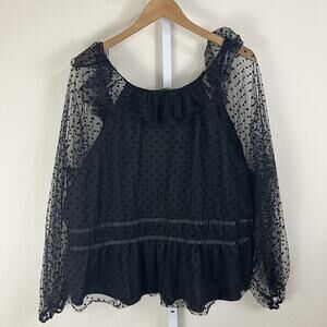 Anthropologie 4SI3NNA Chantria polka dot top size 3X. Sheer puff sleeves, ruffle v-neck collar, two tie front closure. Excellent condition.