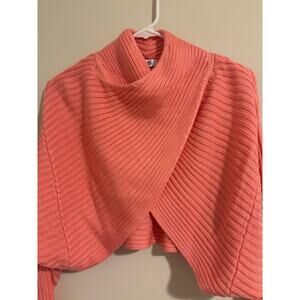 Anthropologie 525 Twist shrug front long sleeve ribbed knit crop sweater sz XS/S