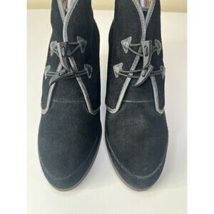 * Item details: Anthropologie The Original 80%20 Ankle Booties Black Suede 2.5" Hidden Wedge Heel Toggle Hook & Loop Closure Women's 10