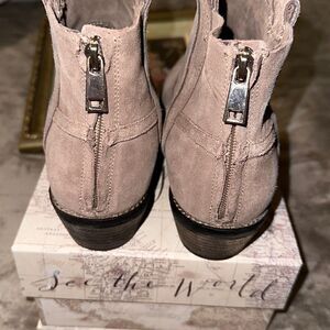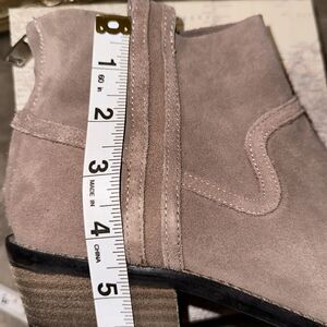 Anthropologie 9 Dolce Vita Tan Suede Back Zip Stacked Heel Ankle Booties