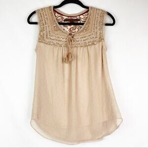 ⭐Anthropologie A Common Thread Taupe Sequined Tank