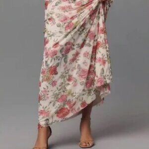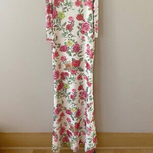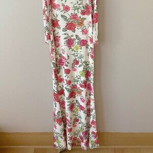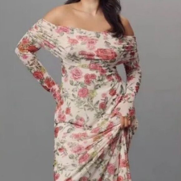 Anthropologie AFRM Off-The-Shoulder Maxi Dress Pink Roses Body-Con XXS Petite