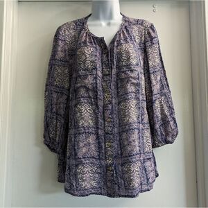 Anthropologie AKEMI + KIN Coconino Printed Buttondown Buttons 3/4 Sleeves