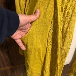 Anthropologie ANGEL OF THE NORTH Yellow Linen Blend Open Knit With Pockets Cardigan Size M