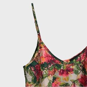 Anthropologie ASTR Women's Two Tier Floral Spaghetti Straps Crop Tank Top Coquette Summer Vacation