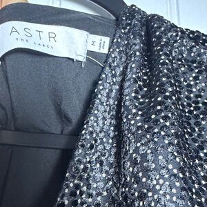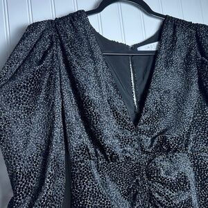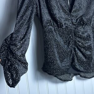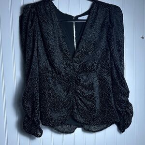 Anthropologie ASTR the label Florence Top Black Velvet Dot M Mutton Sleeves