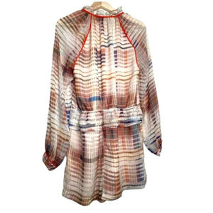 Anthropologie Adelyn Rae Grid Graphic Romper Ruffle Lined Size Small